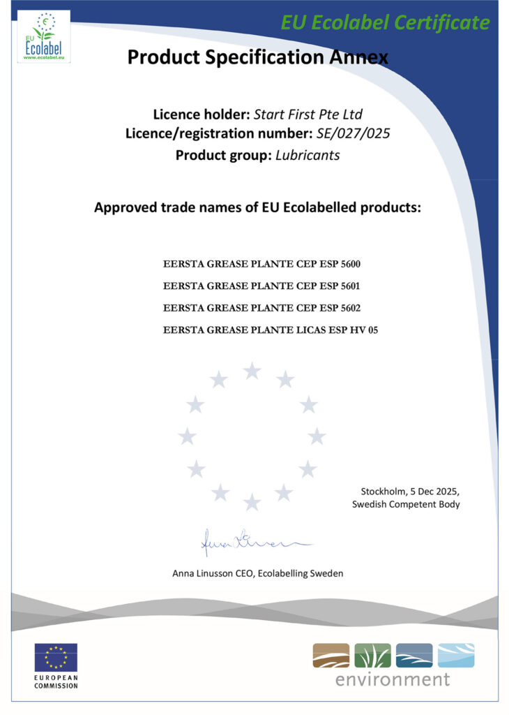 EU Ecolabel CertificationBy Admin / December 23, 2025 Lubricating the Future Responsibly. Ecolabelling Swedenhas awarded the EU Ecolabel licence numberSE/027/025 to us ~!